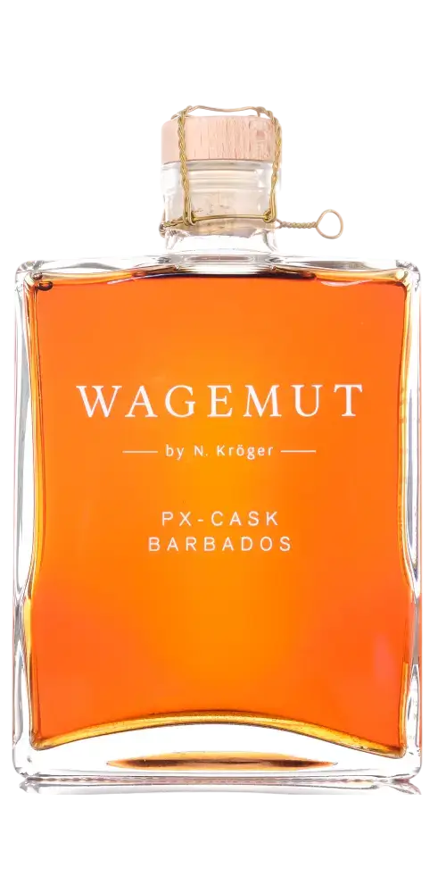 Wagemut PX‑Cask: 10 Jahre Barbados‑Rum aus Pot‑/Column‑Distillation, veredelt mit 3 Monaten Pedro Ximénez Sherry‑Finish in Deutschland. Ohne Zucker oder Farbstoff. Weich, fruchtig mit Vanille‑ und Sherry‑noten – ein süffiger Einstieg für alle Rum‑Liebhaber.