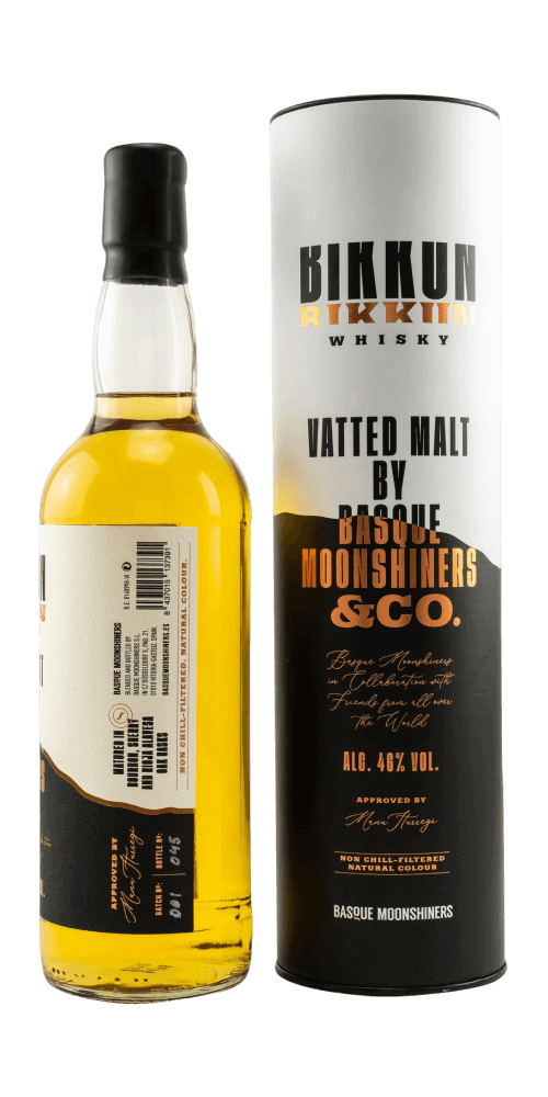 BIKKUN Vatted Malt: Ergebnis einer Zusammenarbeit mit DISTELL International, kombiniert dieser Whisky den "Sherry"-Charakter der Highlands mit dem rauchigen Touch der schottischen Inseln und der Signatur von Basque Moonshiners.