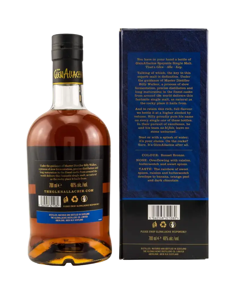 Seit 1967 steht GlenAllachie Distillery für herausragende Whisky-Qualität. Tief verwurzelt in schottischer Tradition, produziert GlenAllachie mit Leidenschaft und Fachwissen. 2017 kehrte sie dank der Gründer der GlenAllachie Distillers Company zu ihren schottischen Wurzeln zurück, belebte ihren Geist neu und schuf mit innovativen Techniken bemerkenswerte Destillate.