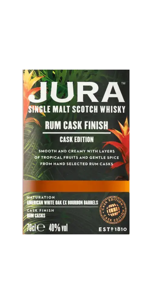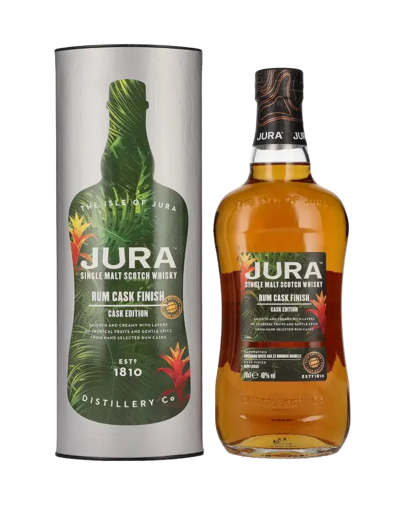 Der Jura Rum Cask Finish vereint in einer Flasche die markante Seele der schottischen Insel Jura mit der exotischen Wärme der Karibik. Gereift in Ex-Bourbon und im Finish in Ex-Rumfässern, entfaltet dieser Single Malt Whisky ein faszinierendes Aromaprofil mit Noten von tropischen Früchten und süßen Gewürzen.