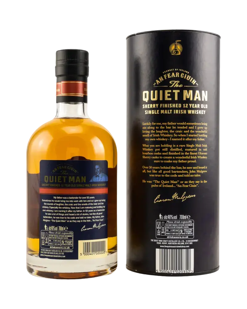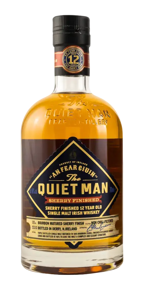 Die Quiet Man Distillery ist ein strahlender Stern am irischen Whiskey-Himmel, benannt nach Ciaran Mulgrews Vater. Mit einer tiefen Familiengeschichte und Liebe zum Whiskeybrennen destilliert sie feinste irische Whiskeys in historischen Mauern. Ciaran Mulgrews Vater, ein langjähriger Barkeeper, inspirierte den Namen "The Quiet Man". Respektvoll kreiert Ciaran Whiskey, der die Ruhe seines Vaters verkörpert.Die Destillerie setzt auf traditionelle Herstellung, betont handwerkliche Fähigkeiten und Qualität. Jeder Tropfen wird sorgfältig destilliert und reift mit Hingabe. Durch den "Pot Still"-Prozess in Kupferkesseln entsteht der charakteristische milde Geschmack. Die Reifung in Bourbonfässern verleiht süße und vanillige Nuancen. Das Sortiment bietet exzellente Single Malt und Blended Whiskeys für vielfältige Geschmäcker. Tauche ein in die Welt der Quiet Man Distillery – jede Flasche erzählt die Geschichte von Ruhe, Respekt und meisterhafter Handwerkskunst.