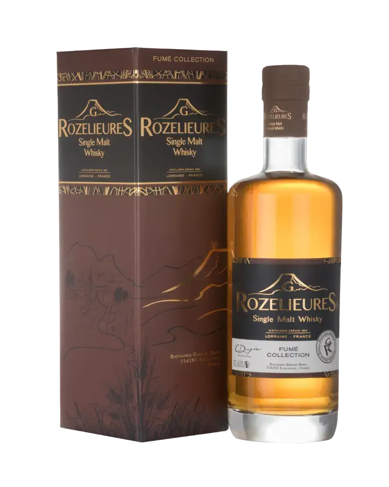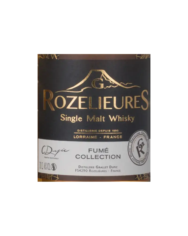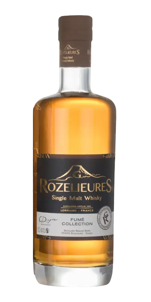 Der Fumé von Rozelieures ist ein torfig-rauchiger Whisky mit 20 ppm und wird für 8 Jahre in Ex-Shery-Fino-Fässern zur Reife gebracht. Abgefüllt wird dieser Malt mit 46% vol. Das Bouquet ist rauchig mit gerösteten Nüssen, Malz, Heu, Kakao, Gewürzen und Zitrusfrüchten. Am Gaumen werden die Aromen noch mit Vanille ergänzt. Der angenehme Abgang ist rauchig mit Kakao und Zitrus.