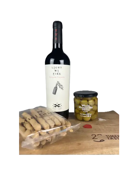 erlesenen Wein, Oliven und Grissini und schenke ihm unvergessliche Momente der