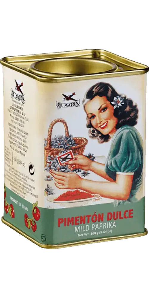 Pimentón Dulce findest du in jeder spanischen Küche und wird zum Verfeinern vieler Gerichte verwendet. Ob du eine klassische Paella oder Fleisch, Fisch oder Eintöpfe würzen möchtest. Die leicht rauchige und süße Geschmacksnote erhalten die getrockneten und gemahlene Paprikaschoten durch das Räuchern mit Eichenholz. El Avion verzichtet bei der Produktion auf die Zugabe von Geschmacksverstärkern und ist ein natürliches Produkt.