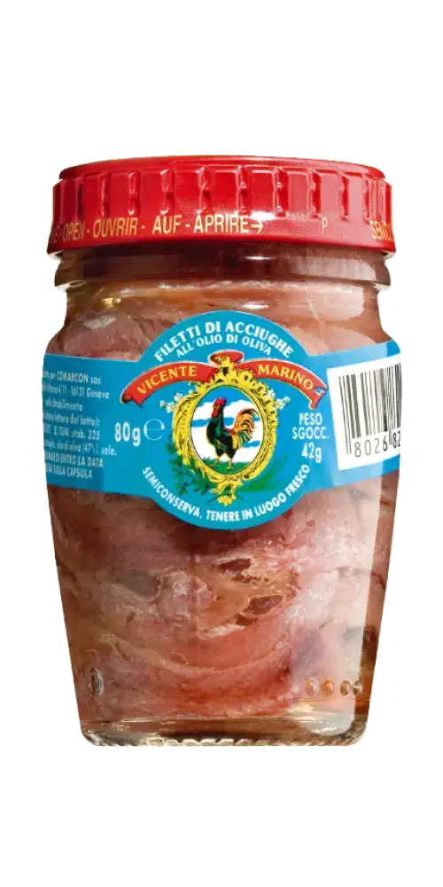 Comarcon S.a.S. steht seit über 100 Jahren für exzellente Fischkonserven. Die von Hand verarbeiteten Sardellen, Makrelen und Thunfischfilets werden nach traditioneller Methode in hochwertigem Olivenöl eingelegt. Gegründet von Santo Marino, der sein sizilianisches Wissen in die baskische Küste brachte, bietet die Marke Vicente Marino heute erstklassige Produkte, die durch Qualität und Handwerkskunst überzeugen. Entdecke den authentischen Geschmack des Mittelmeers.