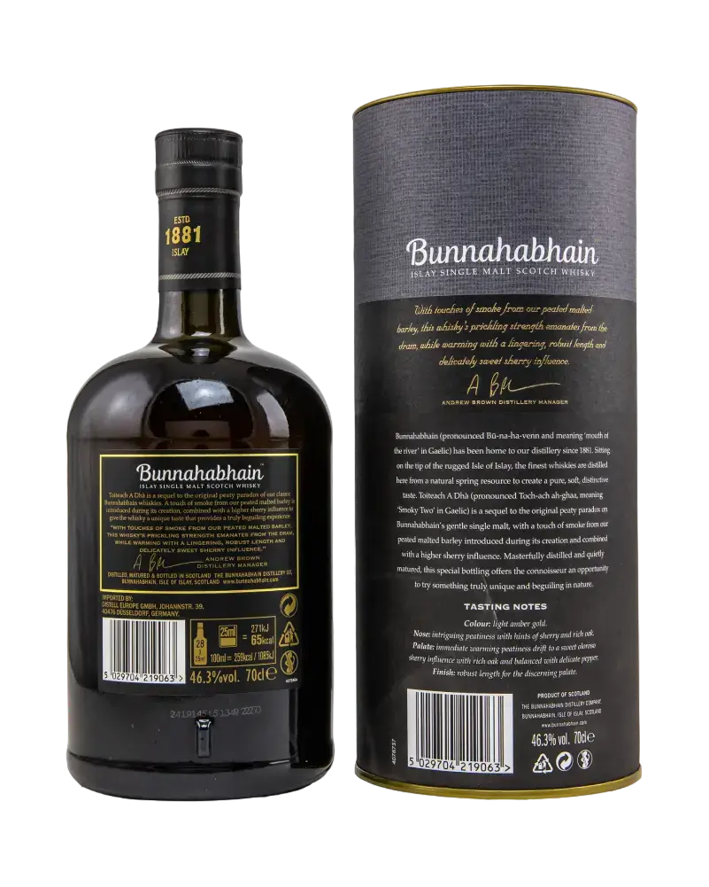 Seit ihrer Gründung im Jahr 1881 steht Bunnahabhain für über ein Jahrhundert an Whisky-Kunst. Als Herzstück der Gemeinschaft auf Islay bietet die Brennerei nicht nur Arbeitsplätze, sondern kultiviert auch einen ungetorften, sanften und maritimen Whisky. Dieser charakteristische Geschmack hebt Bunnahabhain von anderen Islay Whiskys ab und zieht sowohl Neulinge als auch erfahrene Whisky-Kenner in seinen Bann.