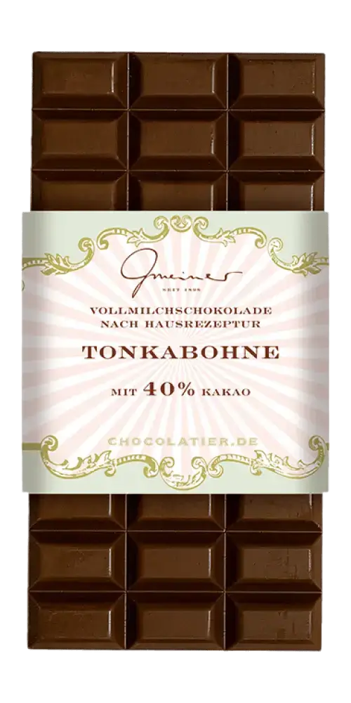 Die feinste handgeschöpfte deutsche Vollmilchschokolade von Gmeiner Confiserie enthält einen Kakoanteil von 40%. Die besten gemahlenen Tonkabohnen verleihen der Schokolade ein feines Aroma für höchste Ansprüche. Das Schokoladenerlebnis der besonderen Art.