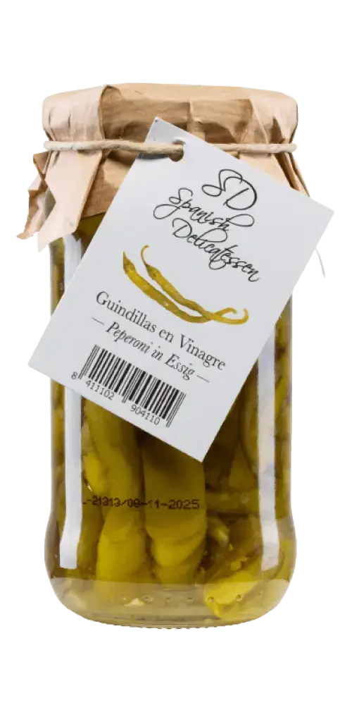 Die in Weinessig eingelegten grünen Peperoni sind mittel scharf und werden in
