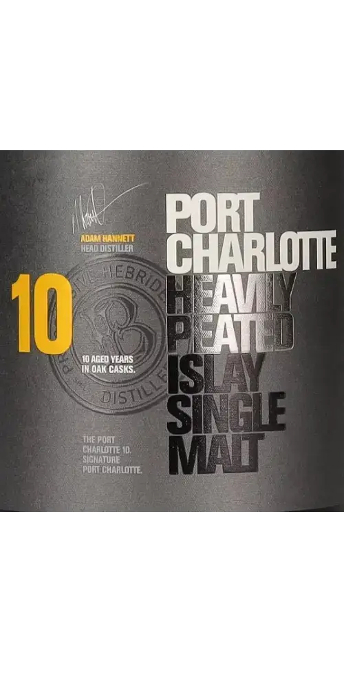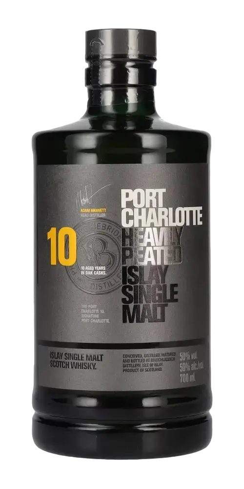 Der charakteristische Port Charlotte Whisky, mit einem Phenolgehalt von 40 ppm, zählt zu den rauchigsten. Trotz intensiver Rauchigkeit überrascht er mit Vielfalt. Langsame Destillation und schmalhalsige Brennblasen erzeugen Aromen von Meersalz, süßem Malz, Vanille und verschiedenen Früchten.