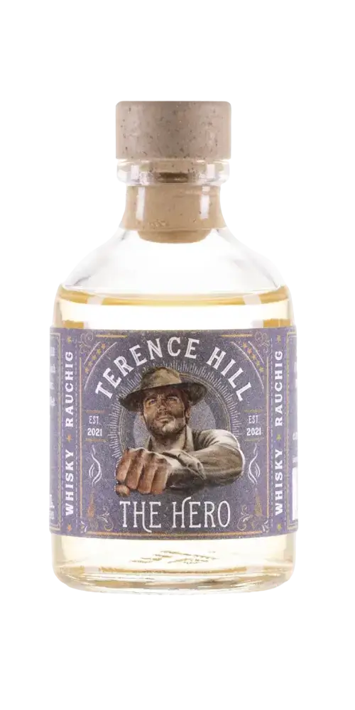 Terence Hill - The Hero - Whisky Rauchig (49% vol.): Ein kräftiger und rauchiger Whisky mit Aromen von Torf, Vanille, Karamell, Pfirsich, Mango, Eiche und Pfeffer. Für echte Whisky-Kenner und Liebhaber rauchiger Noten.