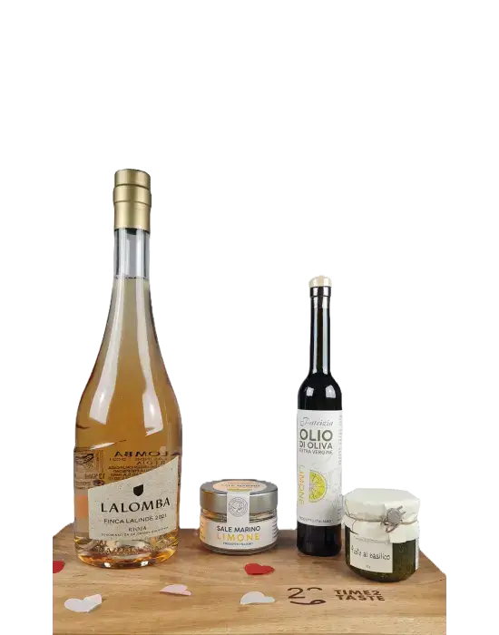 1 x Ramon Bilbao - Lalomba Rosado, 1 x Basilikumpesto, 1 x Patrizia Olivenöl, 1 x Patrizia Meersalz (ohne Deko)